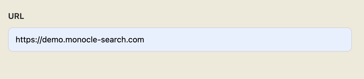 You’re in! Now you have to let Monocle know which site you want to have the search feature on. Put your site’s URL in the “URL” field and click on "Start trial". For the purpose of this tutorial, I’ll be using https://demo.monocle-search.com